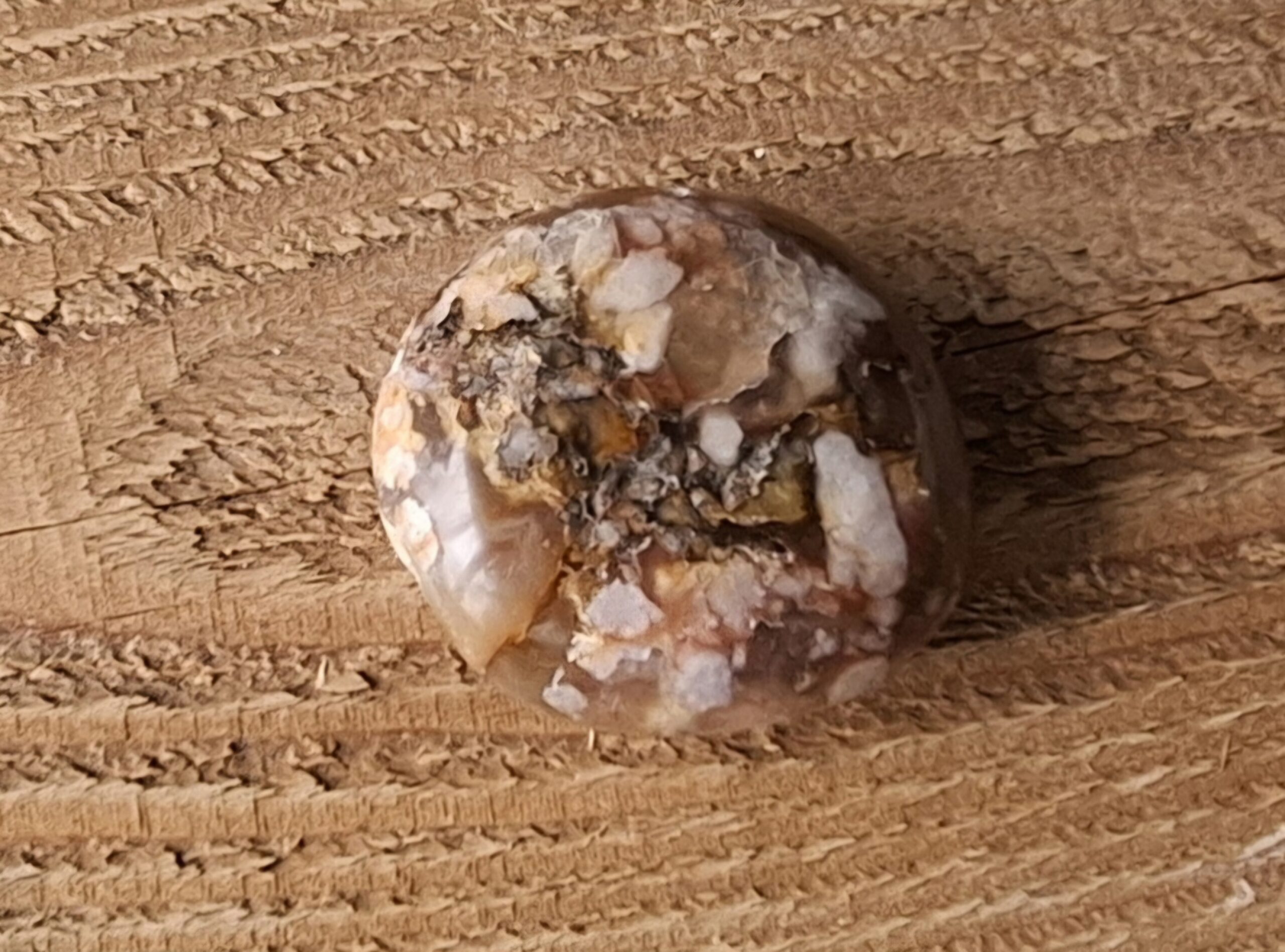 Het is een prachtige Agaatsoort met 3D patronen van witte bloemen in helder Chalcedoon.